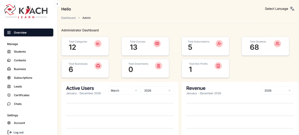 The LMS platform is built with scalability and flexibility in mind. Whether serving a few hundred learners or thousands of users simultaneously, the system is engineered to maintain high performance, seamless video streaming, and reliable course access.